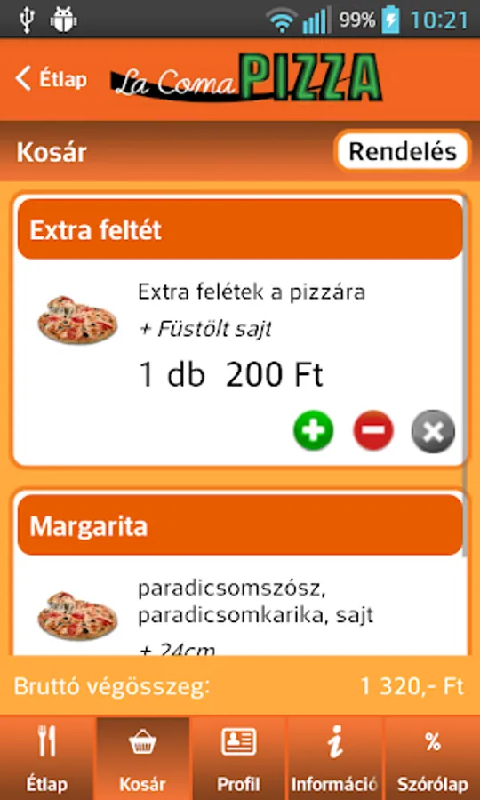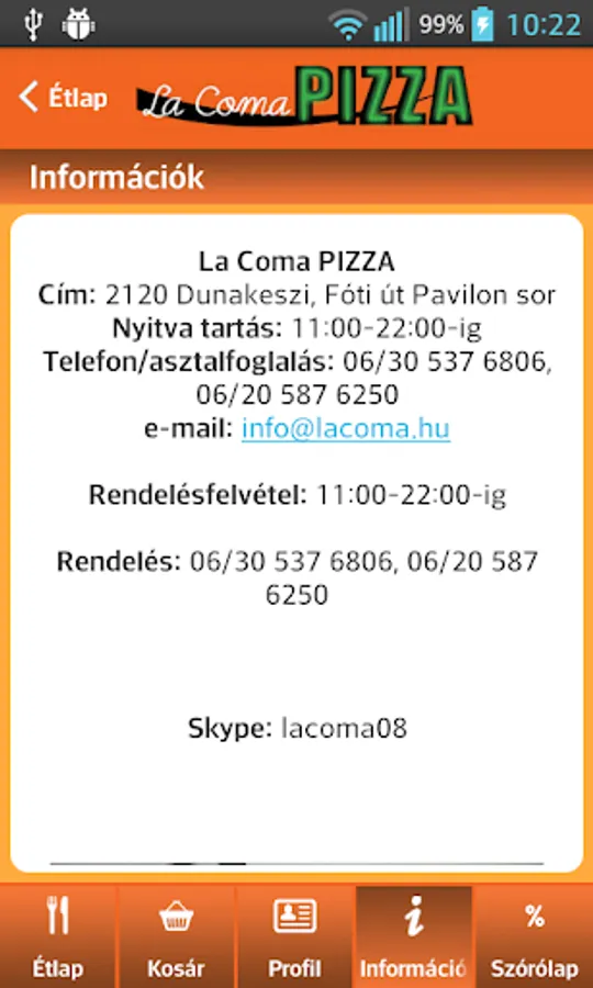 From spring to autumn, a grill on our terrace you can enjoy ínyencségeinket, but can choose from our menu on the Internet and we deliver your order. (Dunakeszi Fot inner city and ordering over £ 1000 for free!)