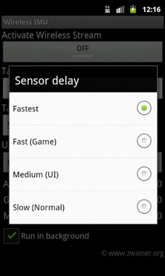 This turns your phone into a wireless inertial measurement unit (IMU).