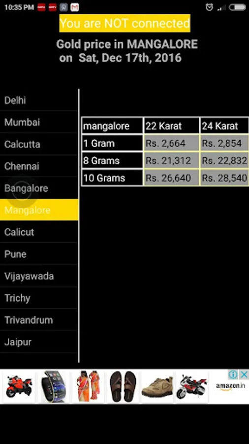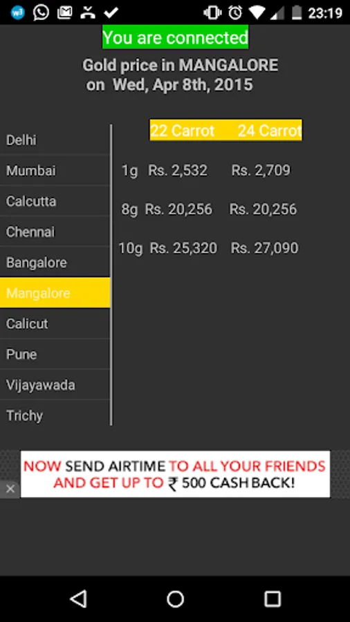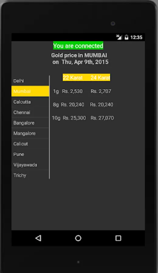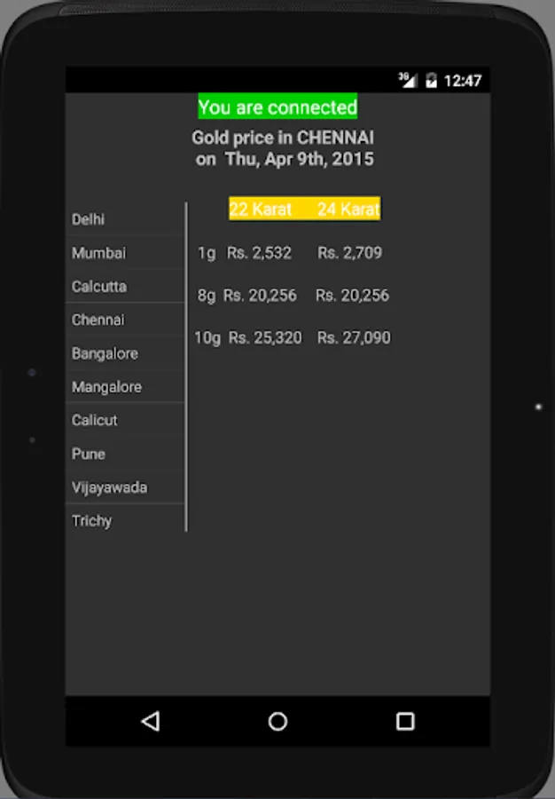 App provides accurate gold price of major Indian cities. The app shows current gold price summary of major Indian cities.