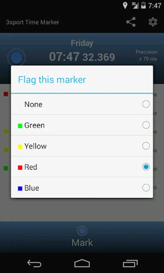 Tips: single tap to share a single time record, long press to flag a record with color.