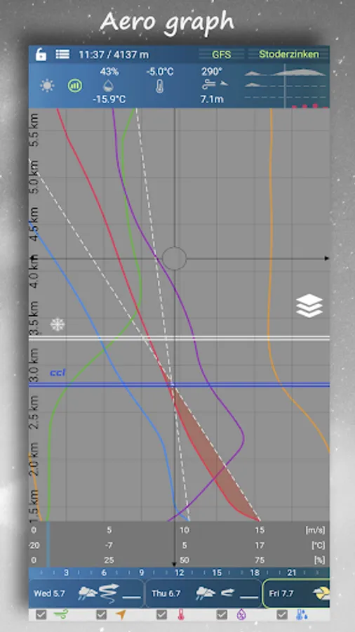 Weather forecast with an extensive vertical profile. For flying and professionals.