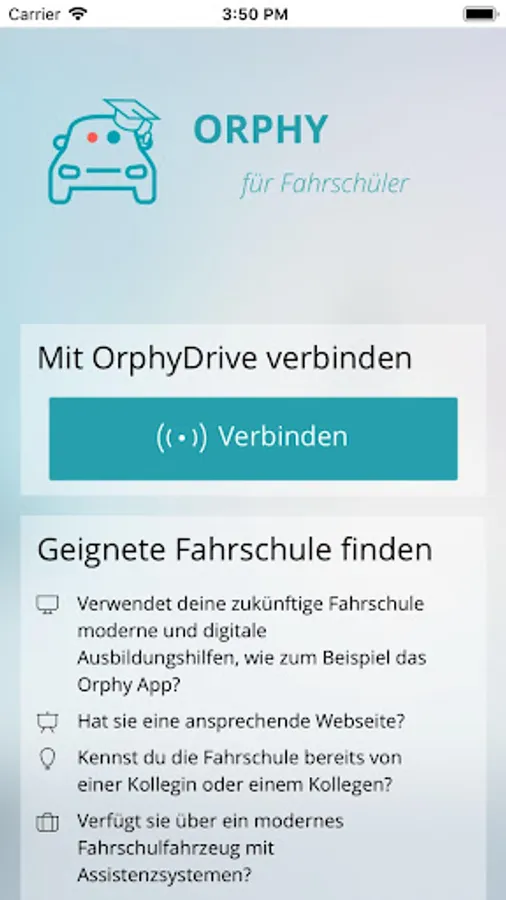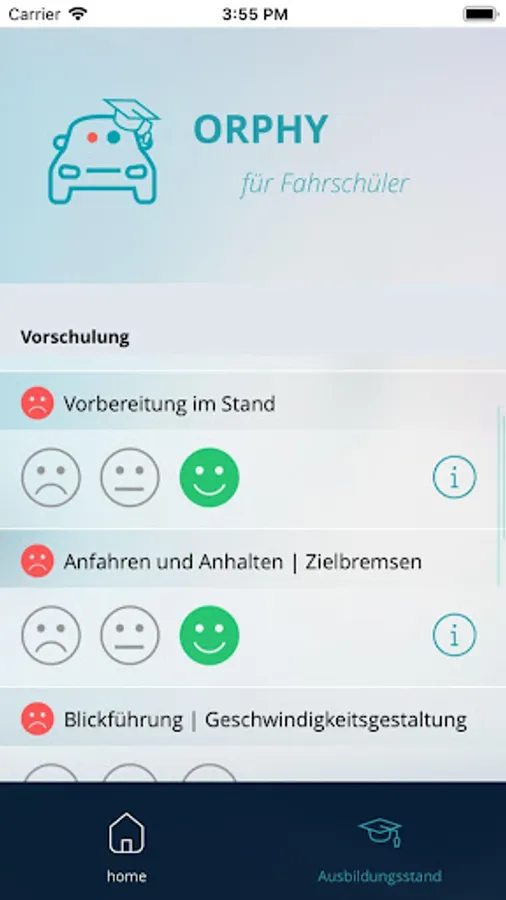 The learner app offers the opportunity to repeat the learned and to improve by tips from the driver. The learning progress and other important information are presented clearly.