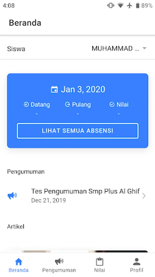 This application was created so that parents can know his student absences per day, and parents can know that student test scores, the app also provides features for announcements, so that parents can know the announcement of school
