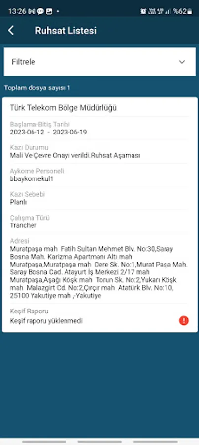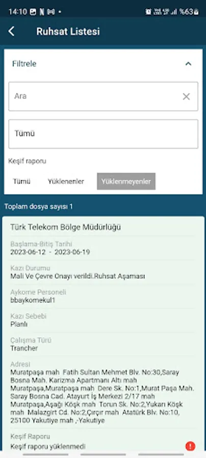 Erzurum metropolitan municipality AYKOME infrastructure application