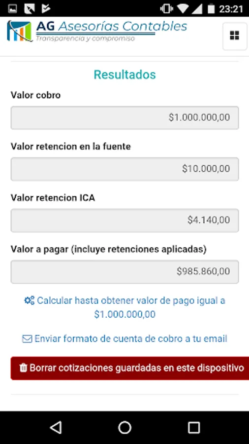 * Know how much is the value of deductions (ICA, IVA, retefuente).
