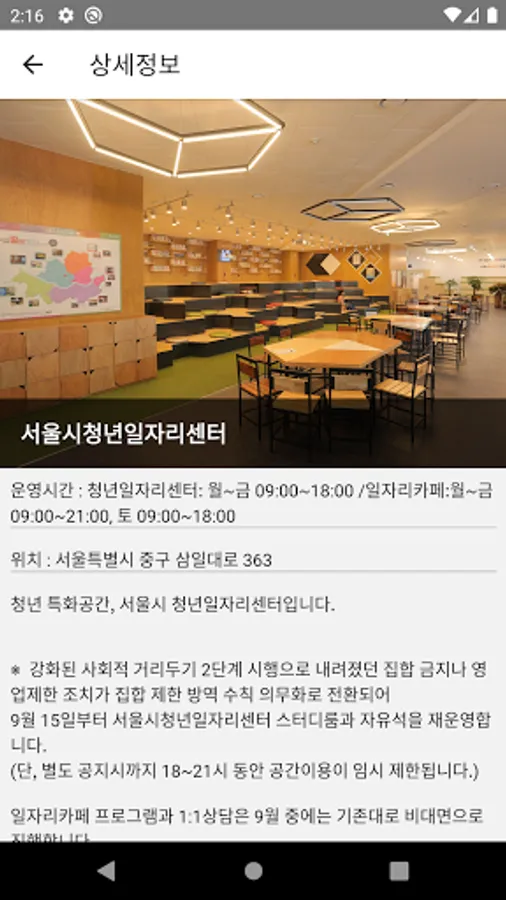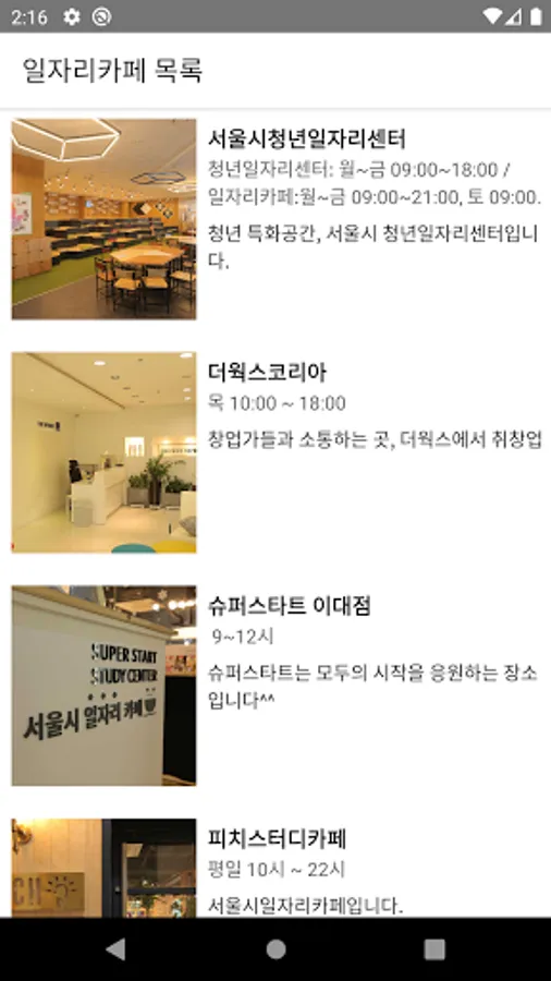This is an app that allows you to check brief information of the Seoul job cafe.