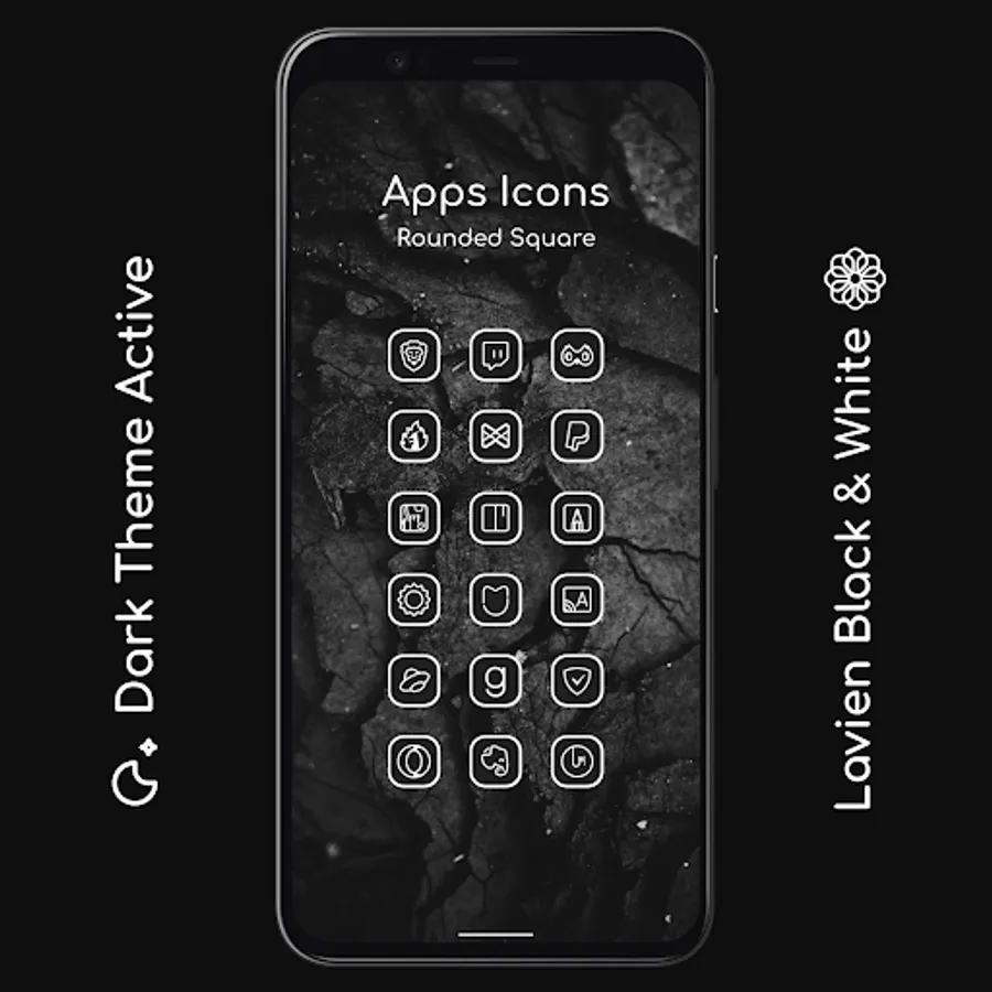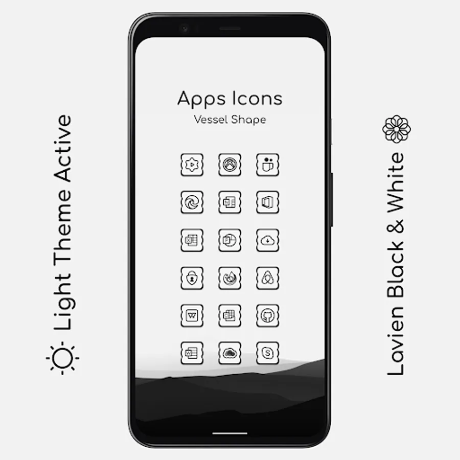 Lavien is elegant and modern icon pack. They have linear foreground and solid color background. The icons change their color to black and white according to the phone's day/night theme. These adaptive icons have outline borders compatible with adaptive shapes.You must reapply icons after change theme device to Dark/Light.
