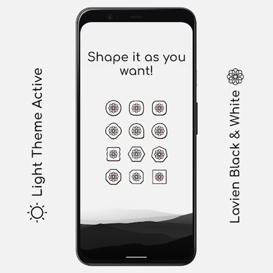 Niagara Launcher: Go to Lavien Adaptive Black&White Icon Pack app. Tap "Apply Lavien Adaptive Black&White Icon Pack", then choose icon shape from developer settings or pixel themes app.