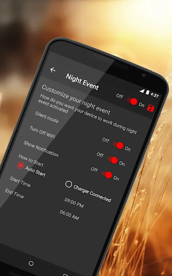 Night mode to make sure you have a good sleep, makes your device silent and turn off the wifi to have a good night,