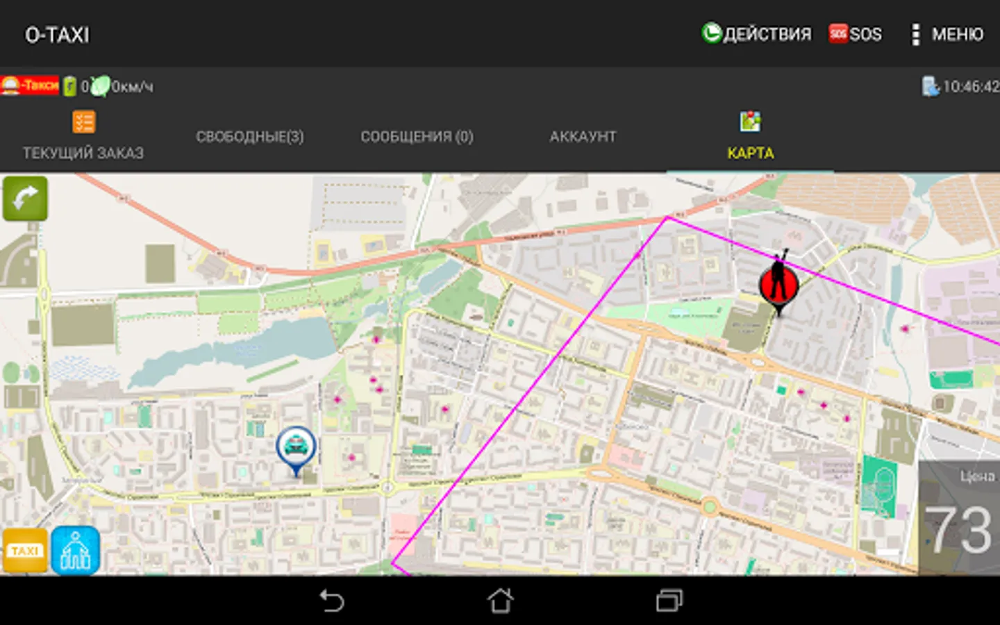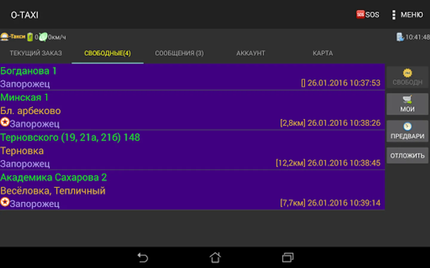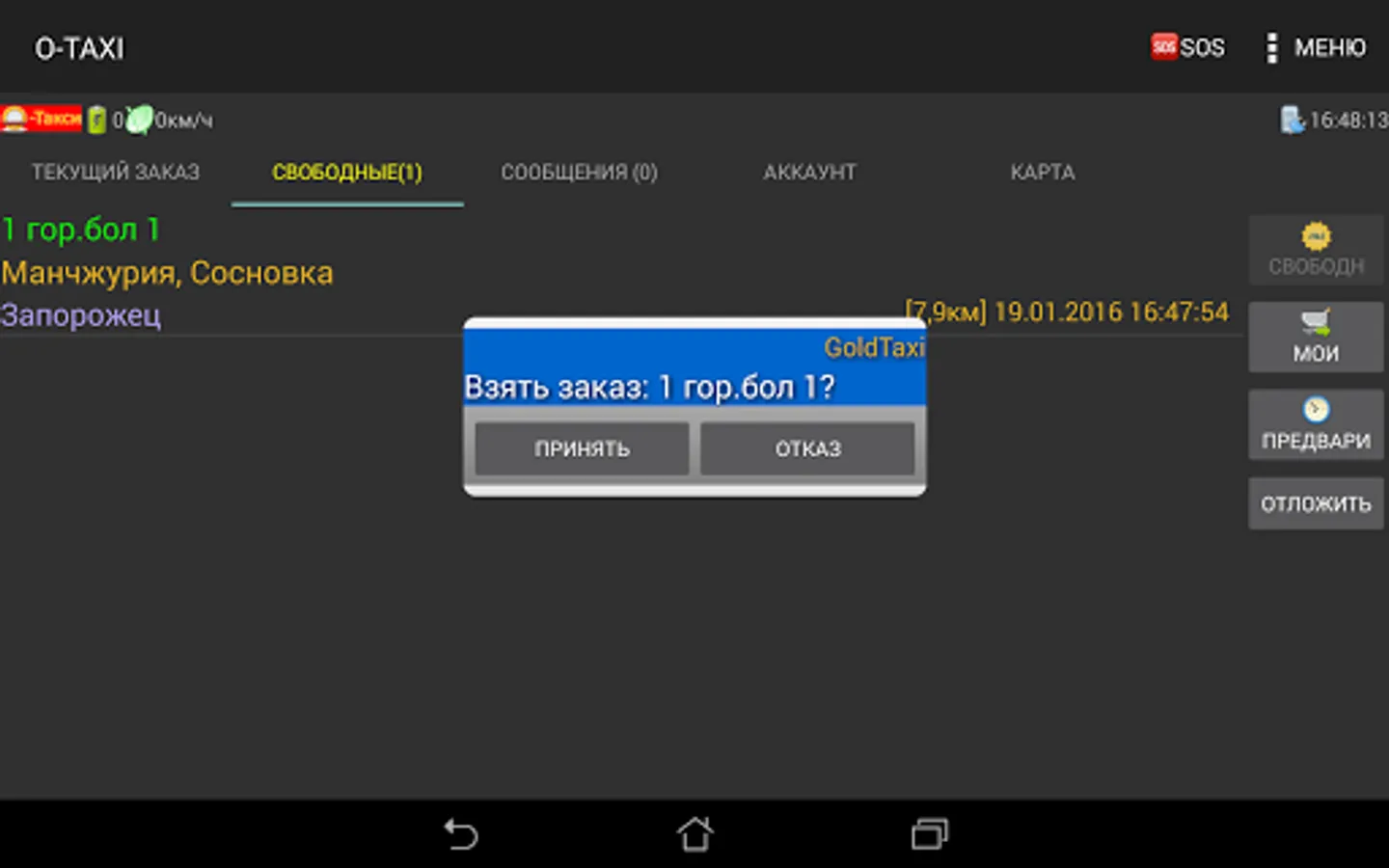 Mobile application O-TAXI for taxi drivers, designed to work with orders.