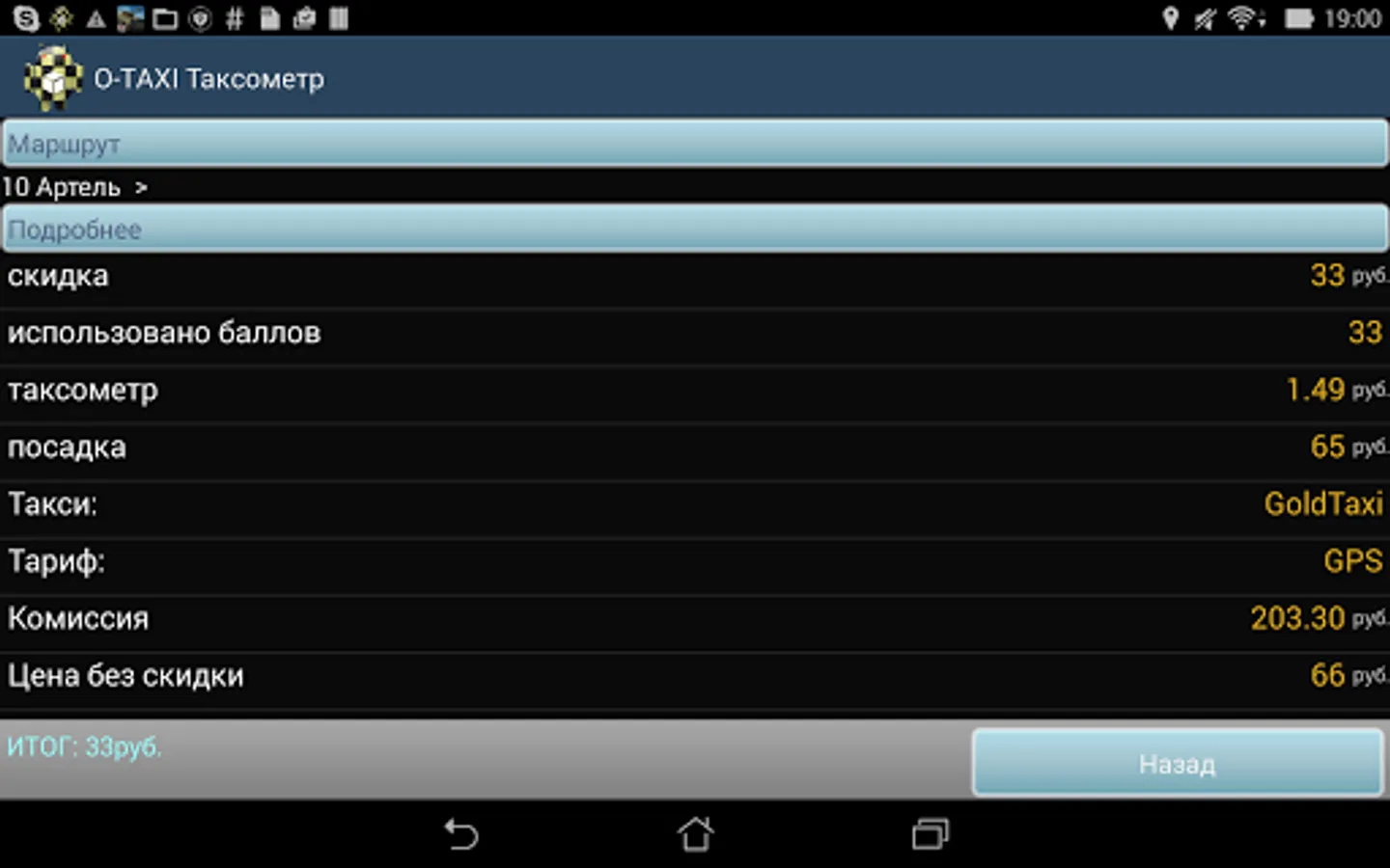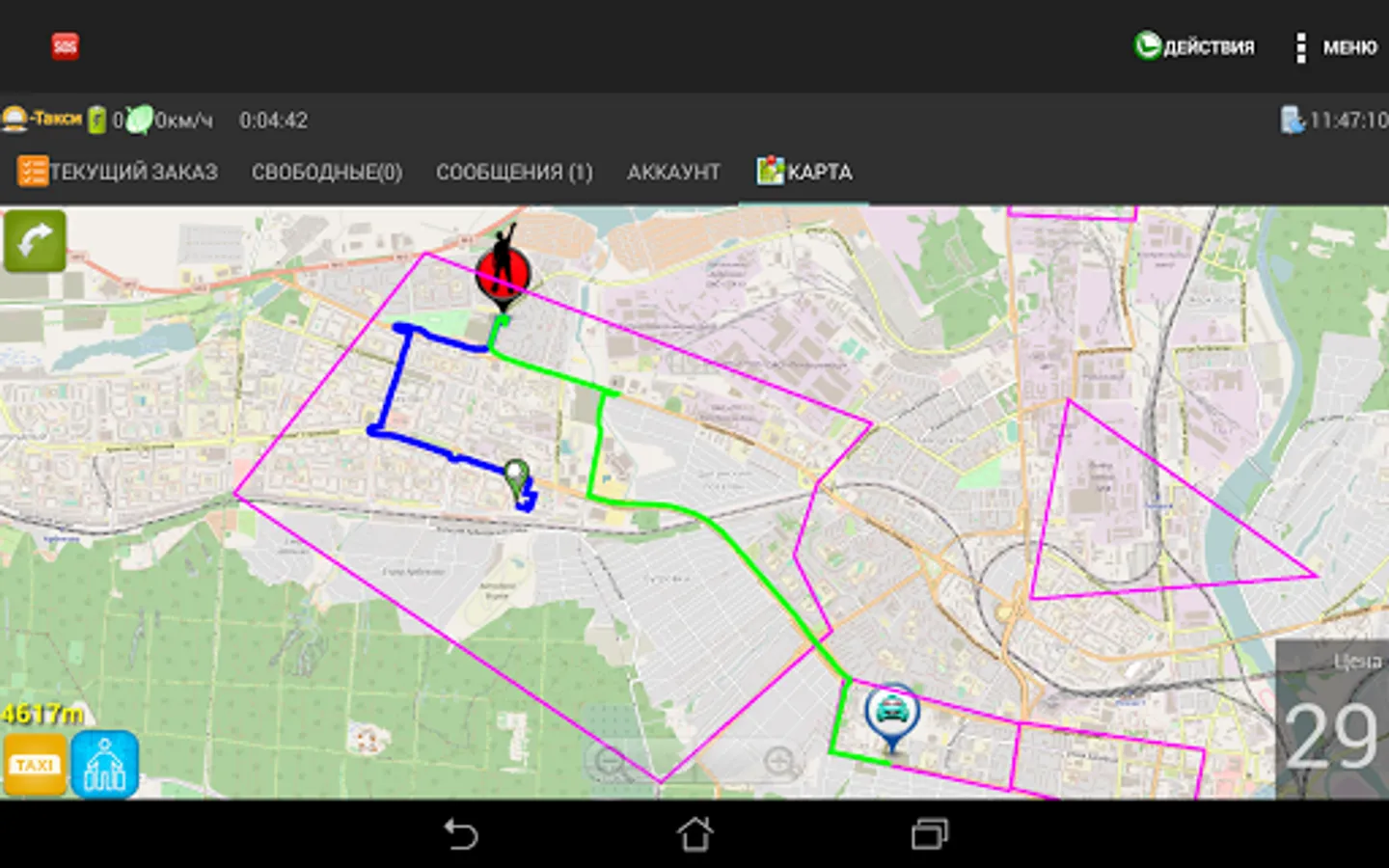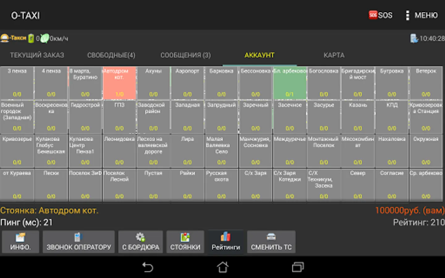Mobile application O-TAXI for taxi drivers, designed to work with orders.