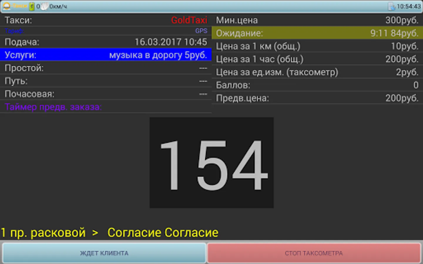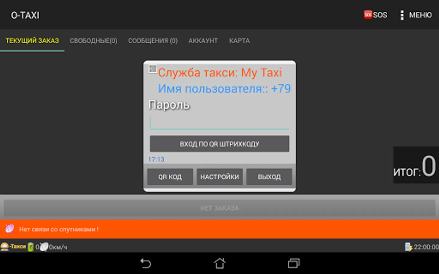 Setting access rights, order of changing order status, parking, etc. - It is configured on the dispatching server. To work on a taximeter without connecting to the server (s) of the control room, use another O-TAXI personal taximeter.