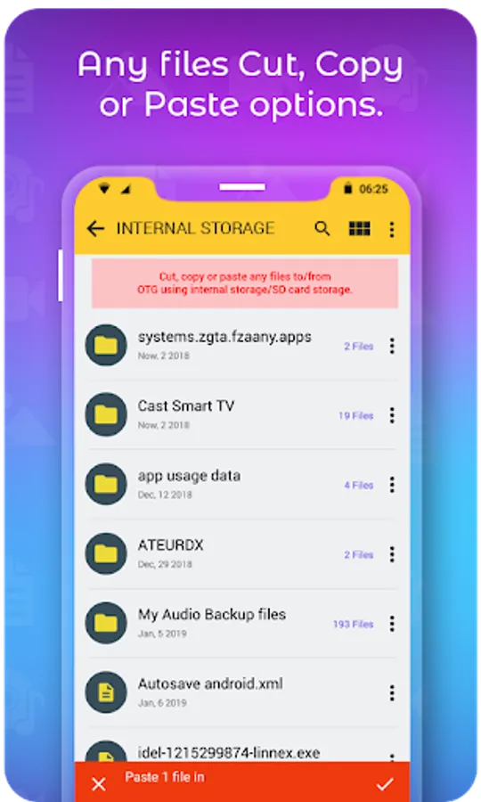 Cut, Copy Paste :- You can use the all new USB OTG Explorer to Tranfer File from OTG to your Android Device or from your Android Device to OTG. You can Cut, Copy and Paste these files. Copy Data To Pen drive from your Android Device has now been made easy and also the Transfer Data from your Phone to your Pen Drive.