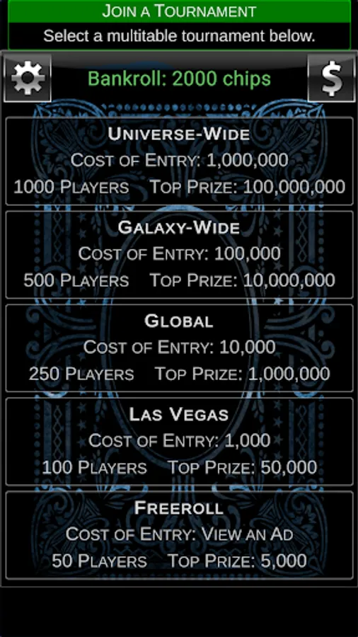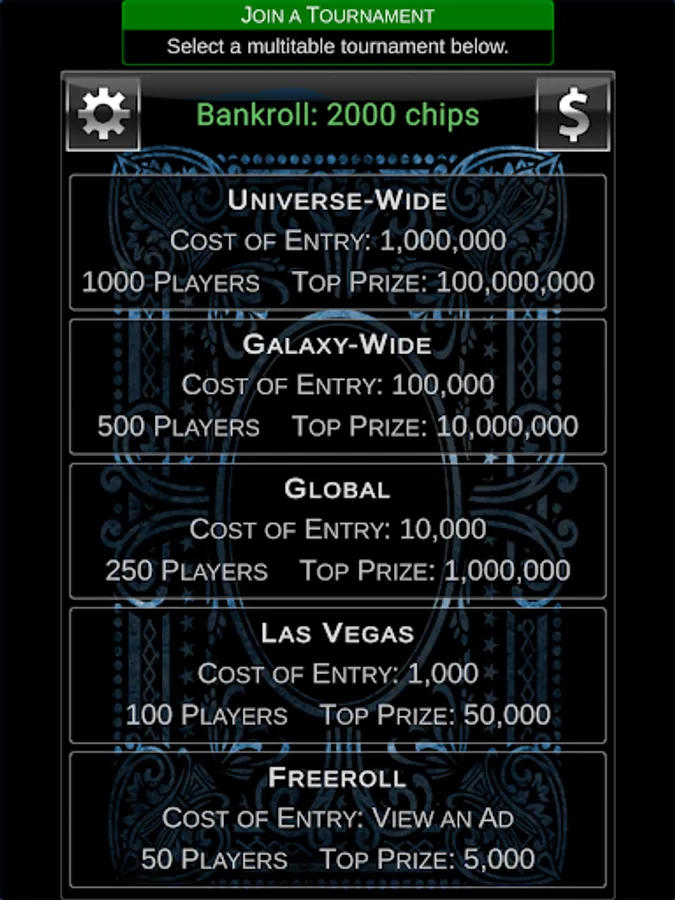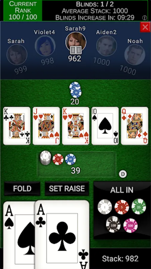 * Adjustable Blind Times - adjust the speed of the tournament with 5, 10 and 15 minute blinds