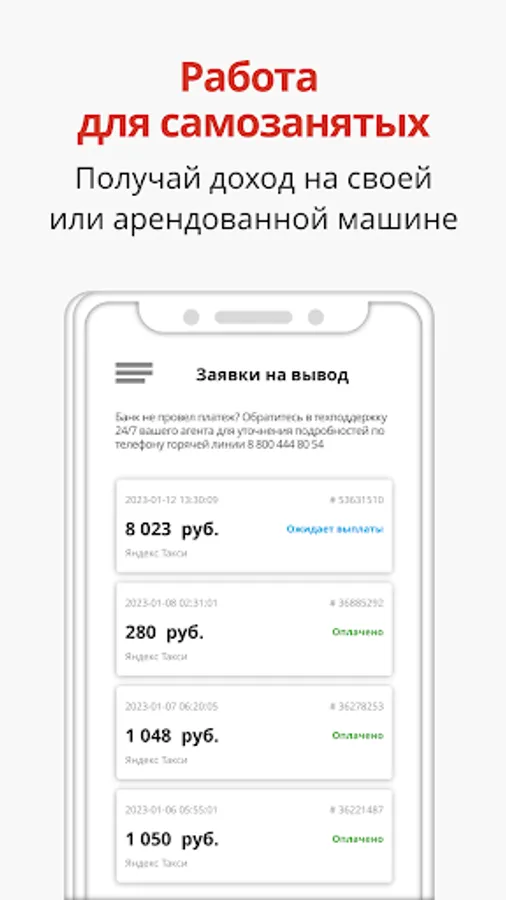 Avangard taxi depot application is a convenient application for taxi drivers and couriers. To cooperate with Yandex.Taxi and withdraw earned funds, now you do not need to visit offices - just download our application and withdraw money at any time convenient for you in just 2 clicks!