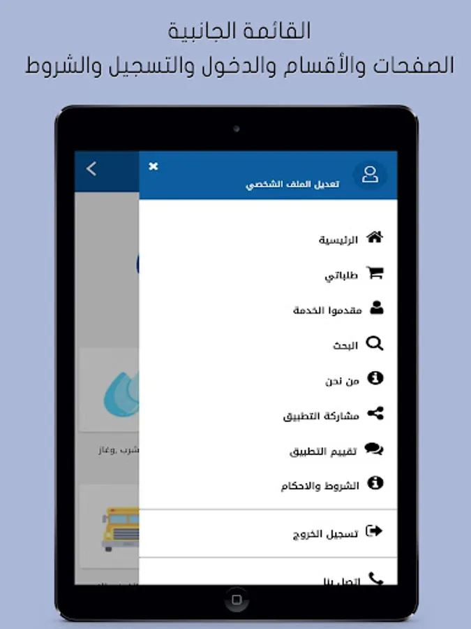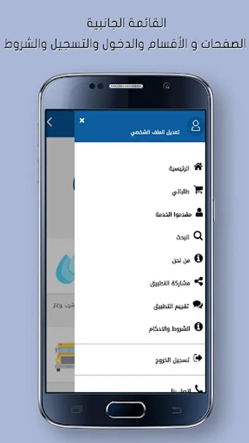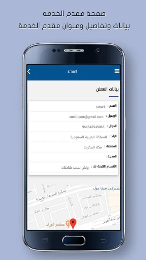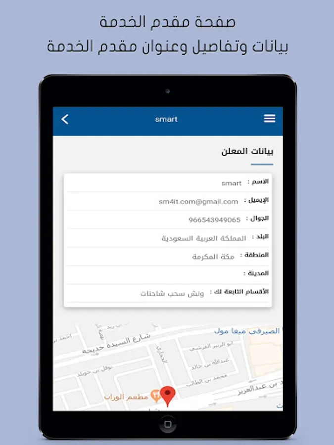 6 - Choose the main section of the desired who wants to request the service of it and then enter the sub-section will have all the means available in this section and after pressing the means required page will appear containing service providers for this section when you press the service provider name of the entire page will appear by the Service Provider Data .