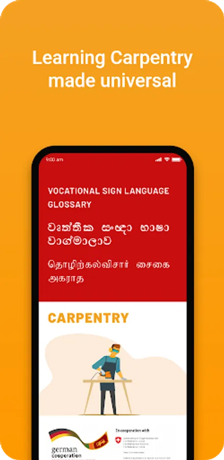 Sign language app glossary has been designed to support vocational training of students with hearing-impairment. This app has been developed by GIZ- Vocational Training in Sri Lanka project, commissioned by German Federal Ministry for Economic Cooperation and Development (BMZ) as part of the efforts to support inclusive vocational training. The project supports a network of vocational training centres including the Nuffield School for the Deaf and Blind in Kaithithady, Jaffna.