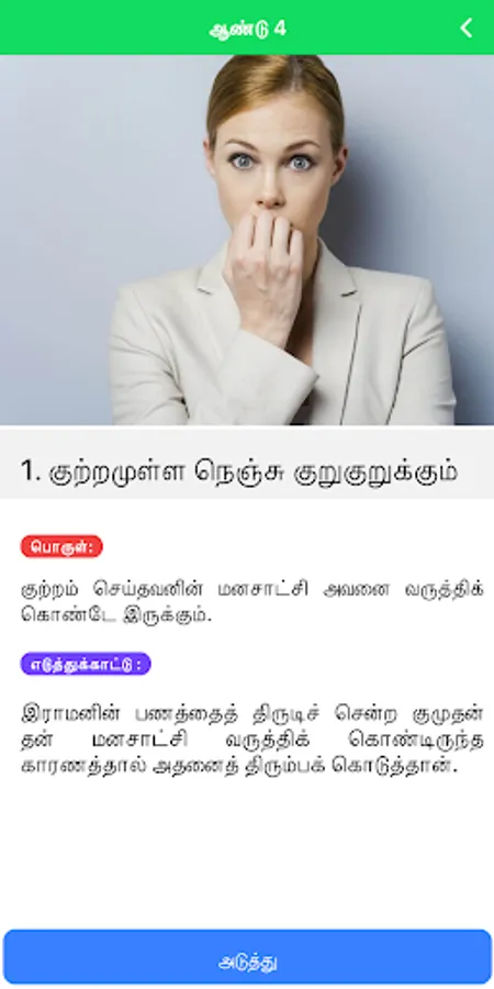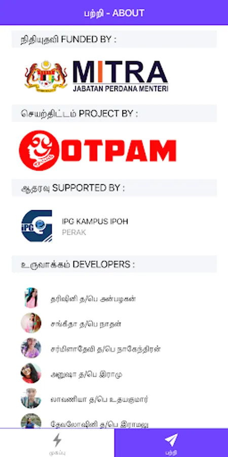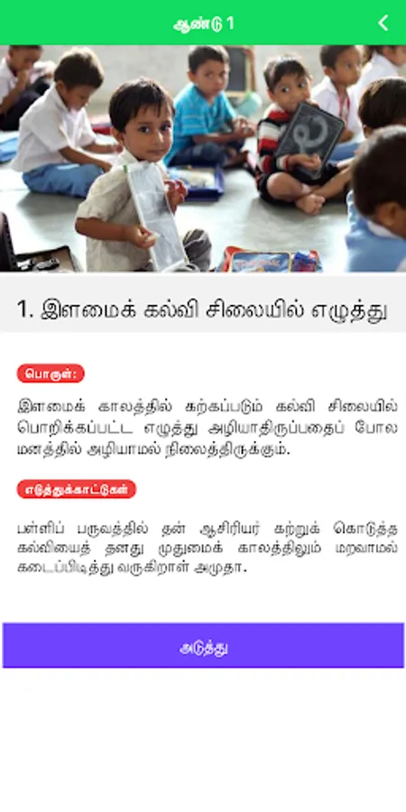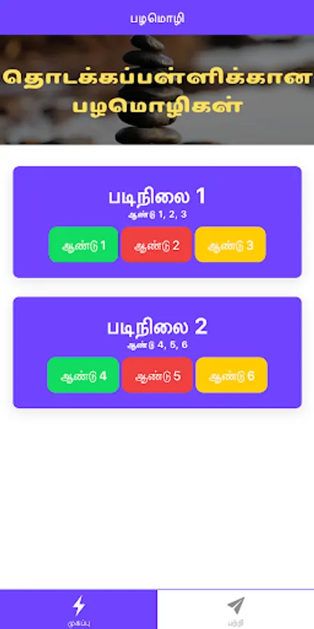 With this, we would like to highly recommend that this app named ìPazlamozhi Proverbsî and it is suitable to all users, especially for Tamil school students from year 1 to year 6 which gives an opportunity to know pazhamozhi and to create an improvement among Tamil school students. This app has made based on textbook syllabus. However the pazhamozhi and it's meaning is taken from ìIllakana, Illakaya & vilakuraiî in user friendly mode. This app shows and guides on the implications of proverb, description, and the best example sentence or situation are also given. With this thought, it is believed that this app will enhance the students' proverbial better understanding. If students have any proverbial doubts/difficulties on Pazlamozhi this would be a solution to act. Not only students but also teachers or anyone who has the interest can have a huge benefit from this app. Moreover, We are aware that the situations and grammar of literature are based on proverbs and their interpretation. In addition, we have also added coloured pictures based on each pazhamozhi. It is important to note that all this is meant to clarify users' doubts