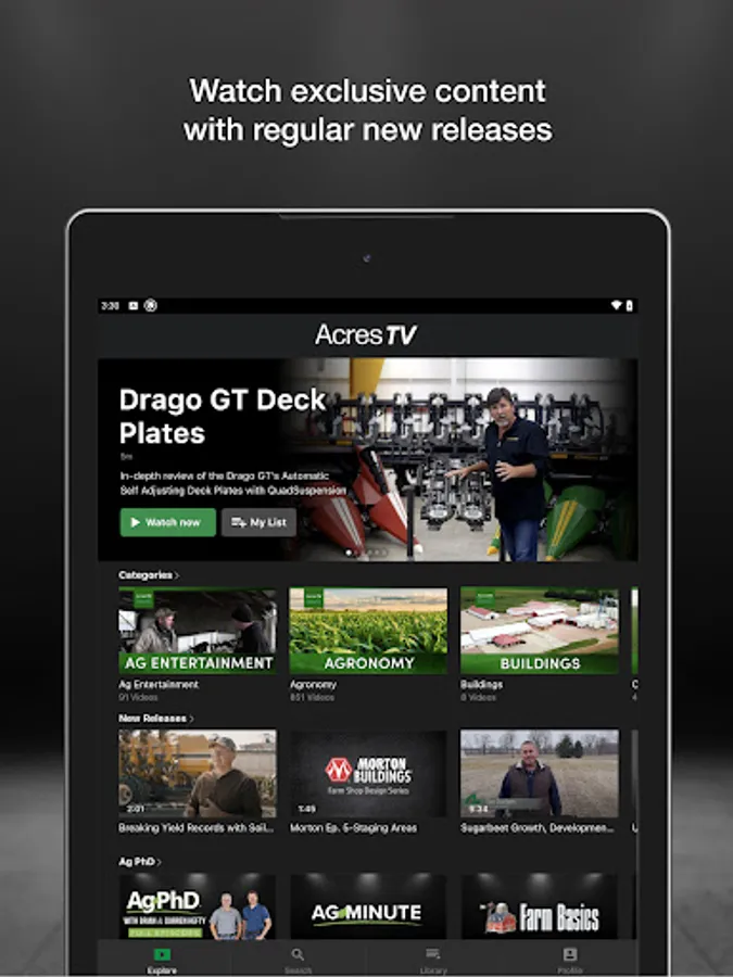 For streaming content that's all about agriculture, look no further than AcresTV. With a regular release schedule and exclusive content, we bring you information and entertainment featuring some of the top voices in agriculture, as well as educational insights into agronomy, crop health, equipment, seed, and more. AcresTV presents insightful perspectives from farmers, researchers, and industry leaders, and showcases the positive impact of agriculture to audiences everywhere. Agriculture is the most important industry in the world, and AcresTV is committed to advancing the next generation of agricultural education.