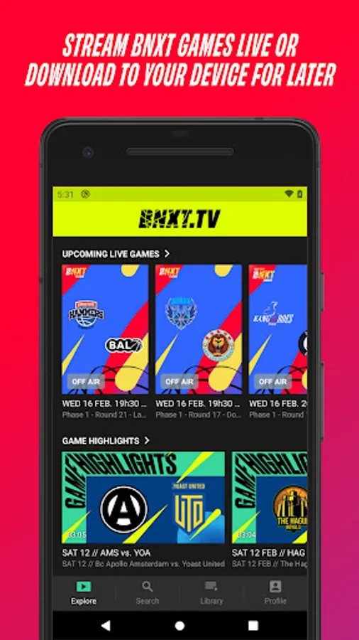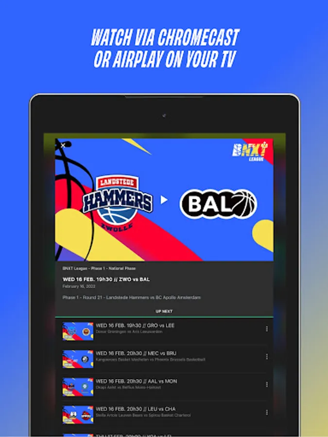 Welcome to the official BNXT.tv app. Get instant access to the best of Belgian & Dutch basketball.