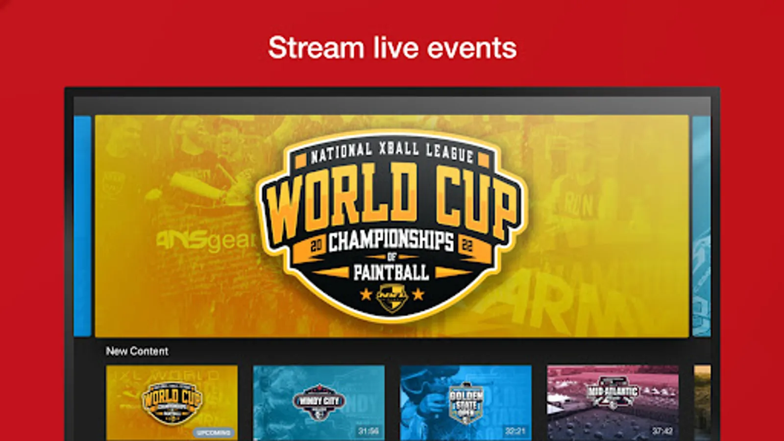 Stream live events on the world's leading Paintball Sports network with your GoSports subscription. Get access to the world's largest Paintball library of NXL and past events.