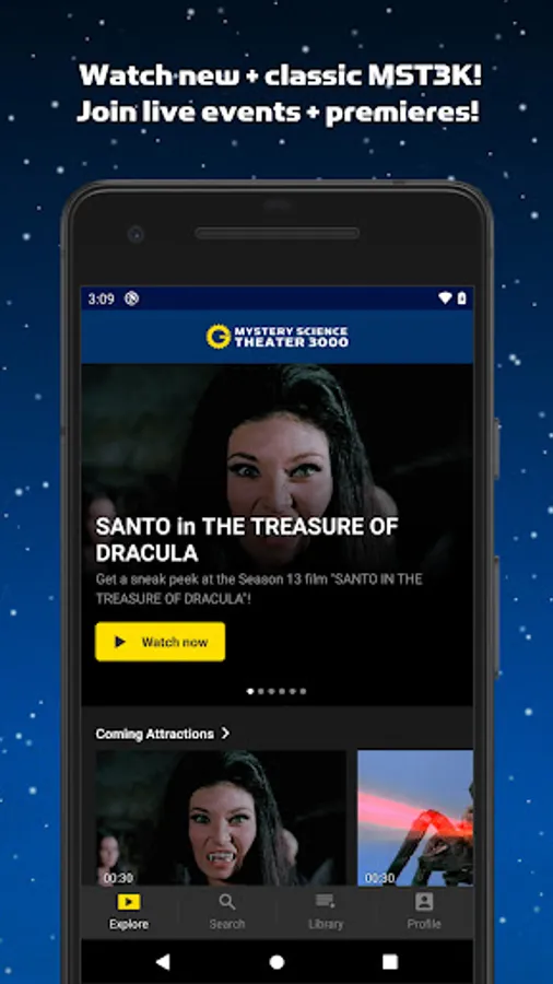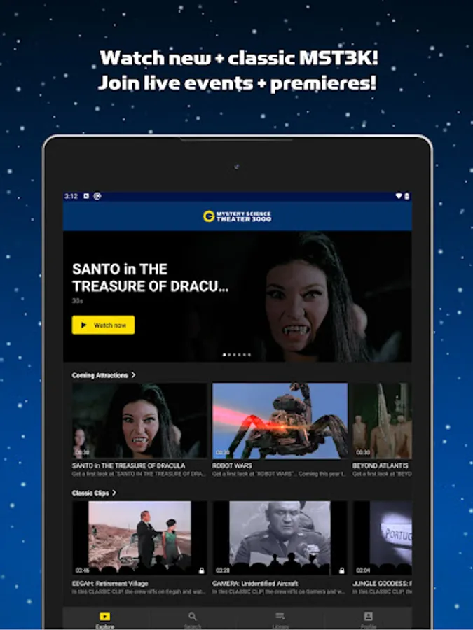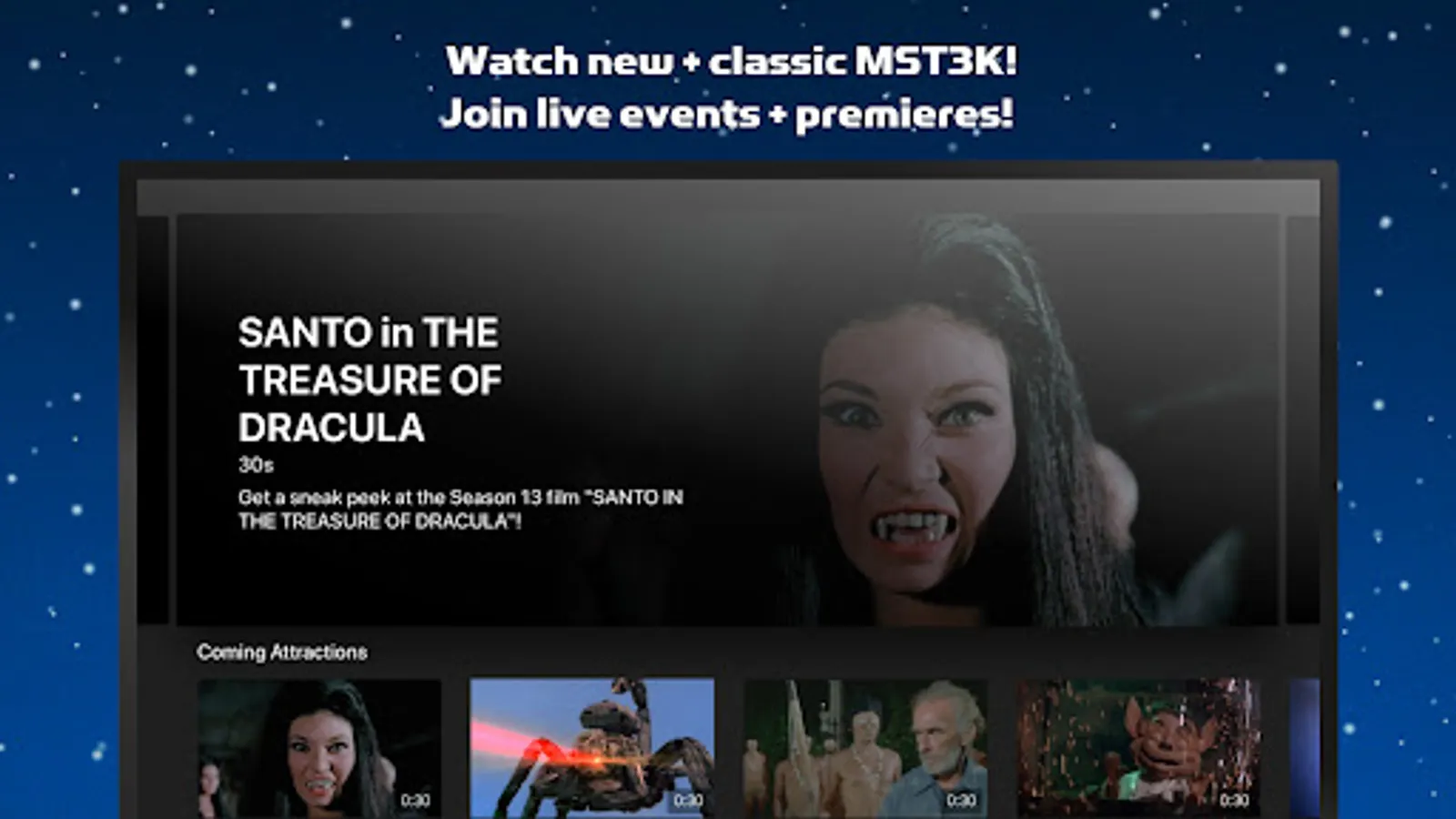 Plus, we've got more exclusive content and surprises planned all year long... so grab some snacks and drinks from your in-home concession counter, and join our human hosts and their robot pals as they endure the cheesiest movies the world has ever seen.