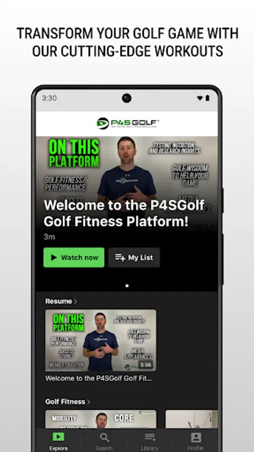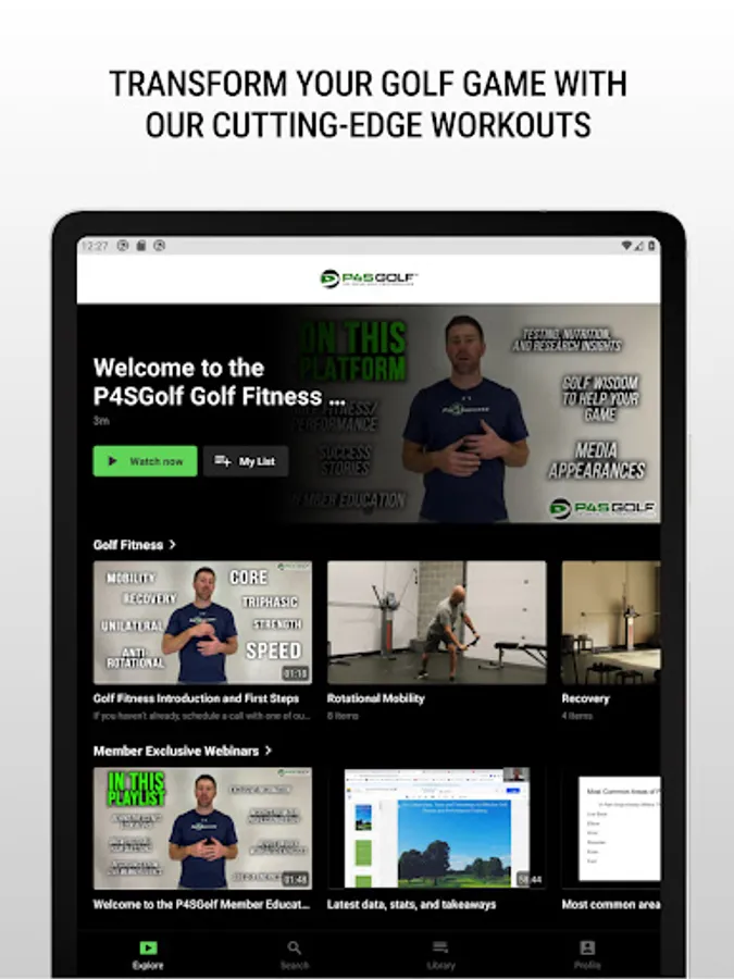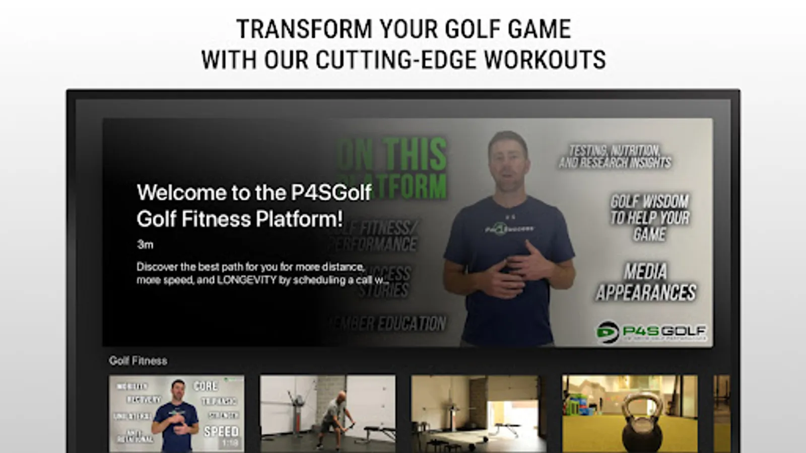 Discover your path to more speed, distance, and longevity with the P4S Golf Fitness App! Programming specific to your individual needs. Transform your golf game with our cutting-edge workouts. Developed by Golf Digest Top 50 Golf Fitness Experts and backed by the world's largest research database on golfers, you are guaranteed to see more distance, club head speed, and mobility