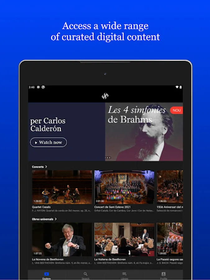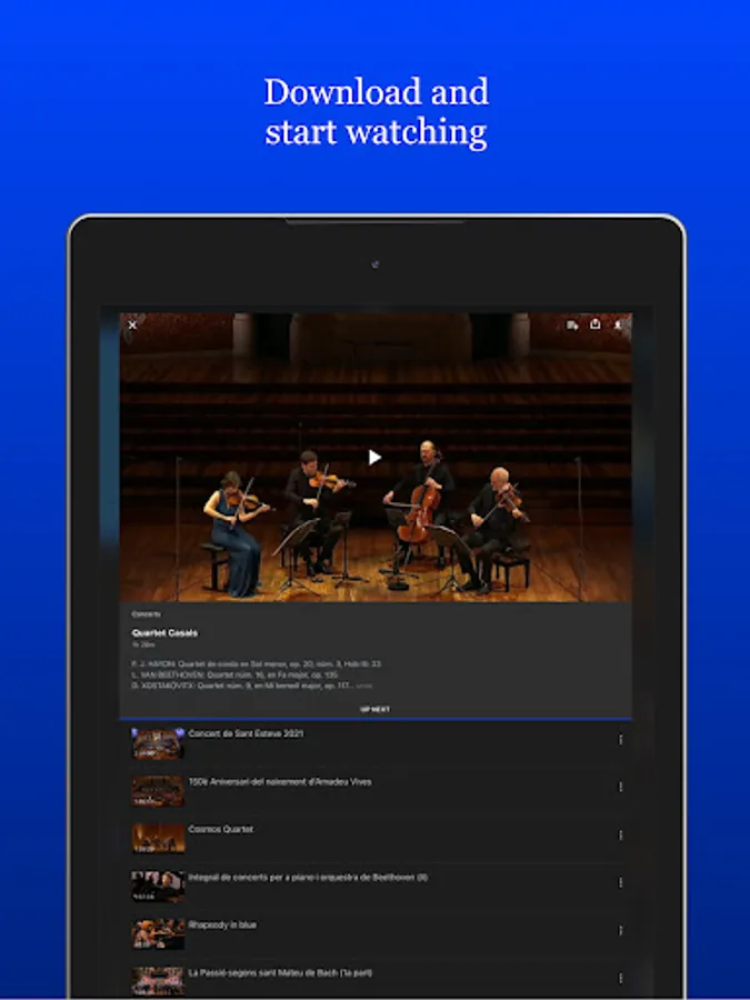 Palau Digital is a platform with a wide range of concerts and exclusively curated digital content linked to the musical offer of the Palau de la Música Catalana and the Orfeó Català.