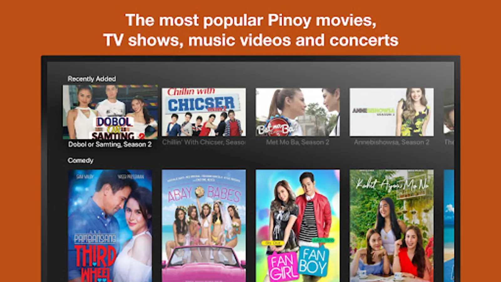 Celebrities, stars and fan favorites such as Anne Curtis, Liza Soberano, Kathryn Bernardo, Nadine Lustre, James Reid, Chicser, Sarah Geronimo, Nikki Bacolod and more; The best dramas, comedies and horror flicks from our most popular directors.