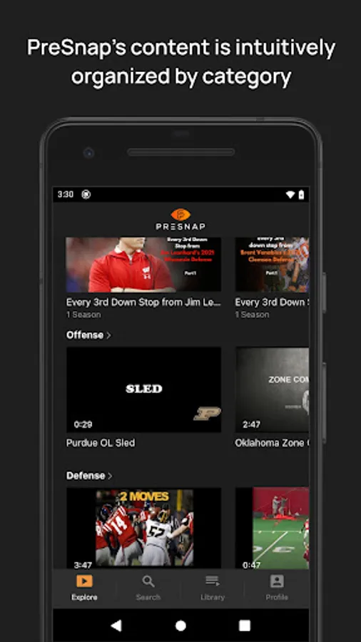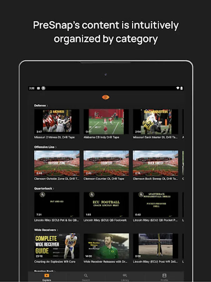 •PreSnap is clean and organized, making it easy for you to find the content you need to help you become a better player or coach.
