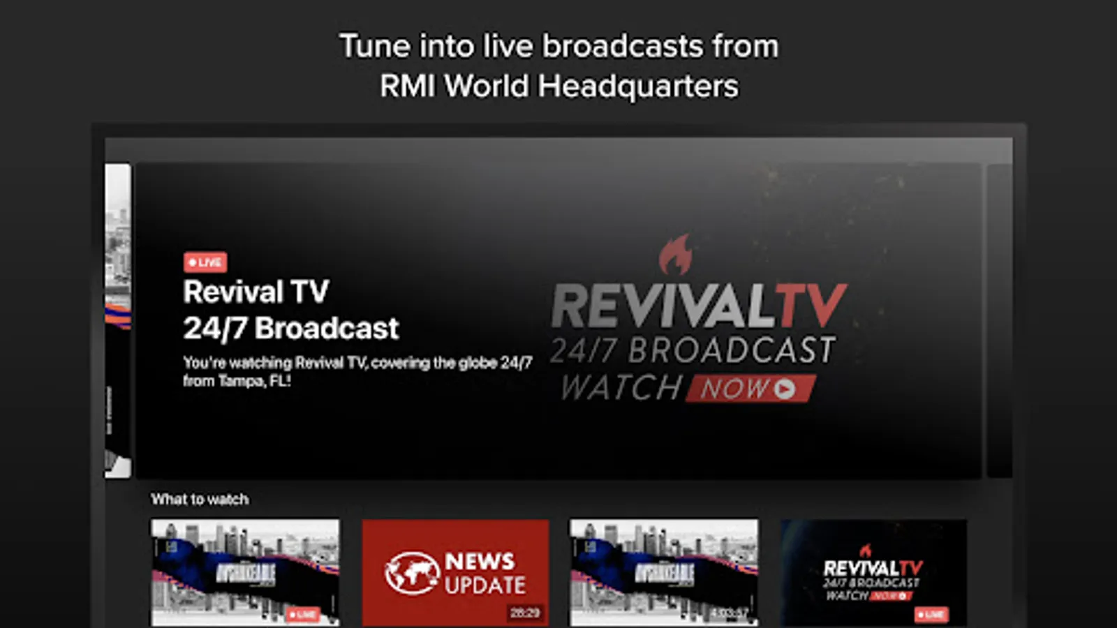 Streaming 24/7, Revival TV makes it possible to receive from biblical and Holy Ghost-filled teaching and preaching that will ignite your faith to see the power and blessing of God in every area of your life.