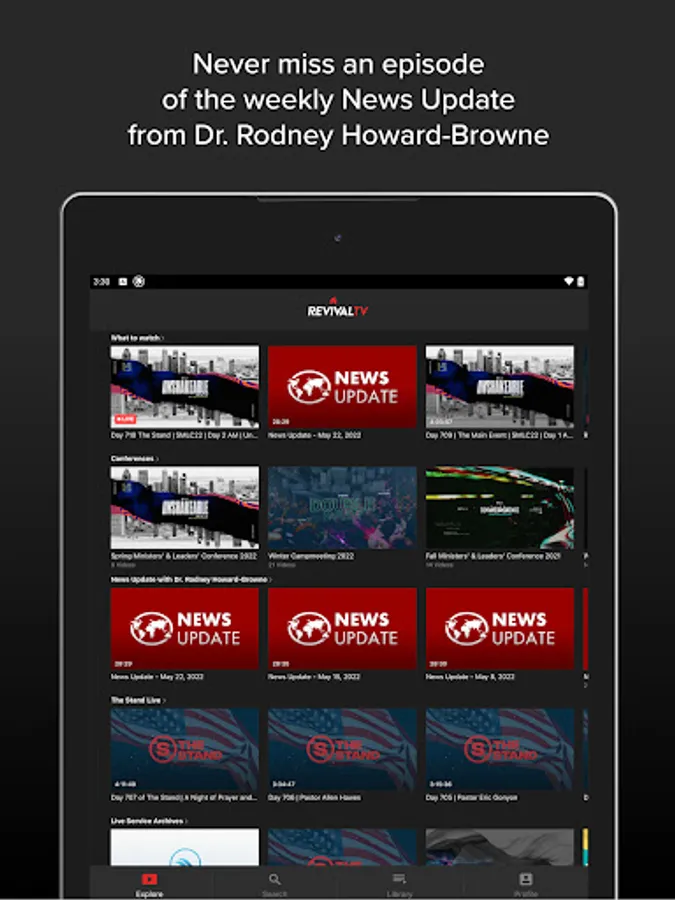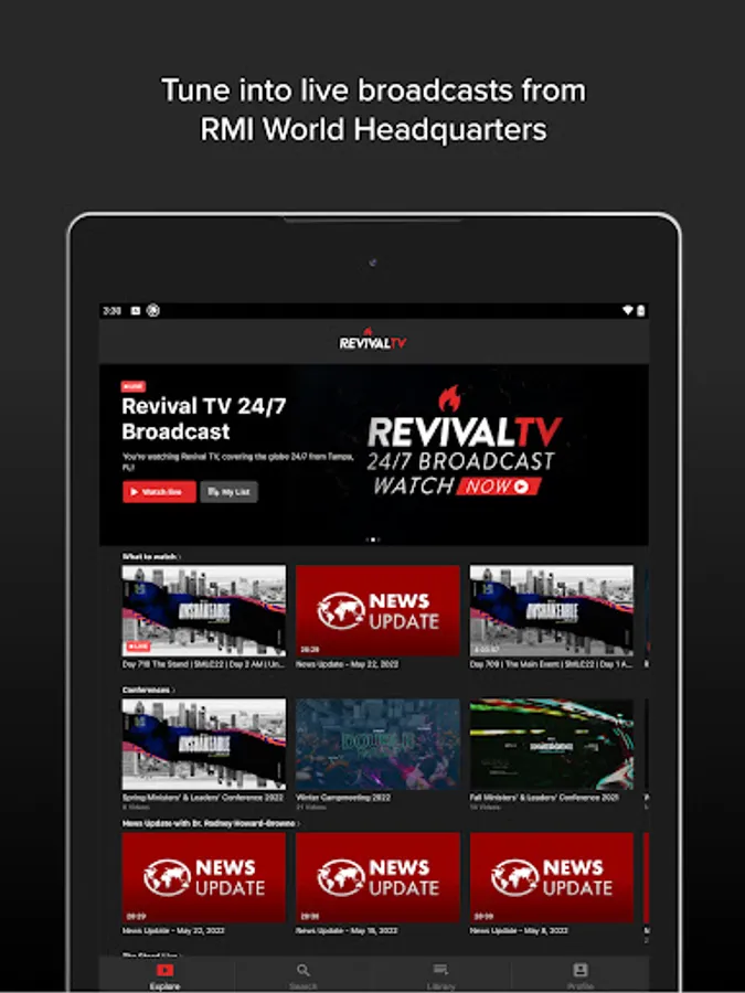 With over forty years of impactful ministry around the globe, Revival TV offers a large library of recordings from live services, yearly conferences, and archived footage that can be accessed anytime and anywhere.
