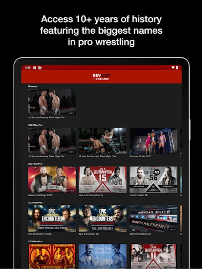Watch all the latest events from Europes leading wrestling promotion, Revolution Pro Wrestling alongside 10+ years of history featuring some of the biggest names in pro wrestling.