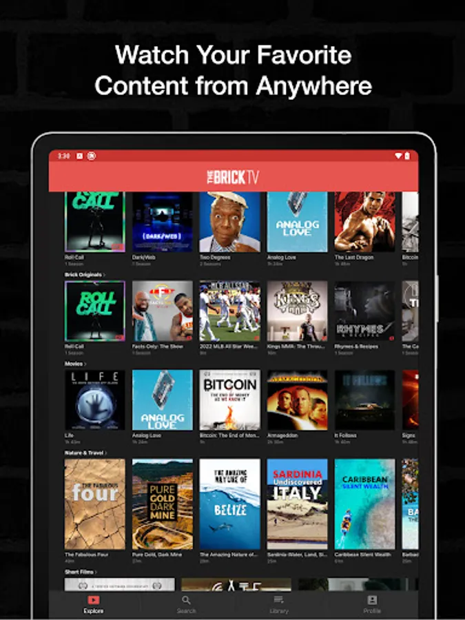 The Brick TV is a streaming service that features culturally responsive content from the voices of those communities. This platform is a place to be in community, to enjoy the brilliant creations of those that created the culture, and to experience a wide array of emotions while viewing productions rooted in love and excellence. From music, to documentaries, short films, and content for kids, each feature is a cinder block that contributes to the entire infrastructure of love and fellowship The Brick aims to build. At The Brick, you'll be glued to your seat, and culturally connected to whatever you choose. You will know you are watching greatness being built, one Brick at a time.