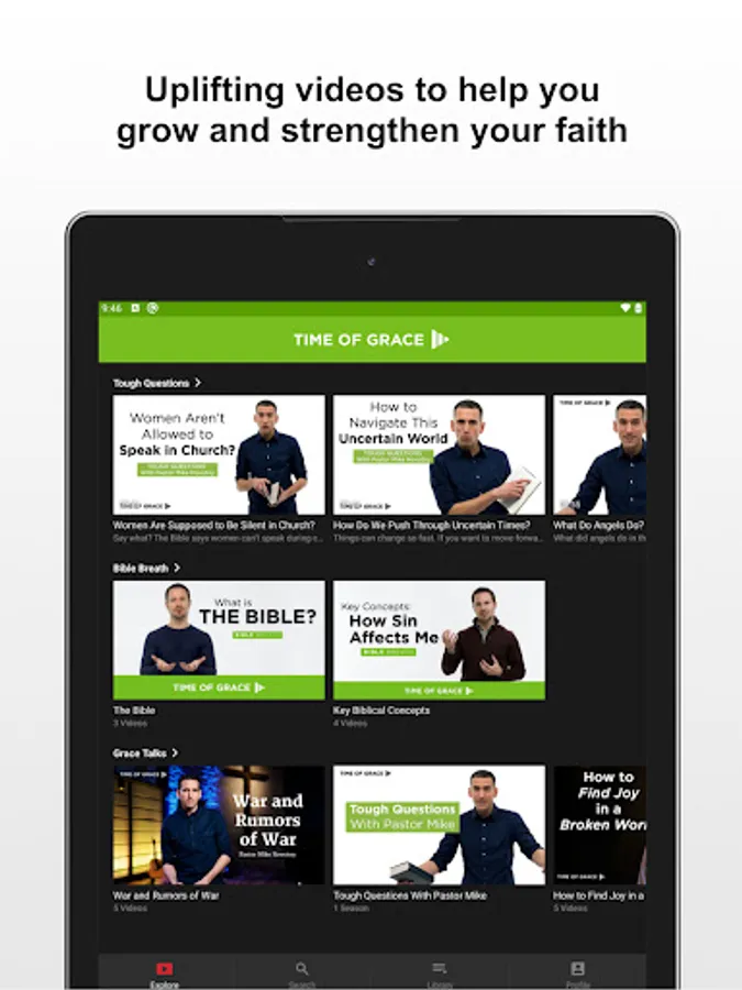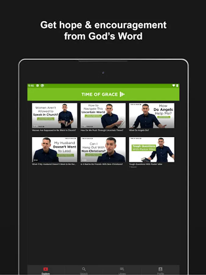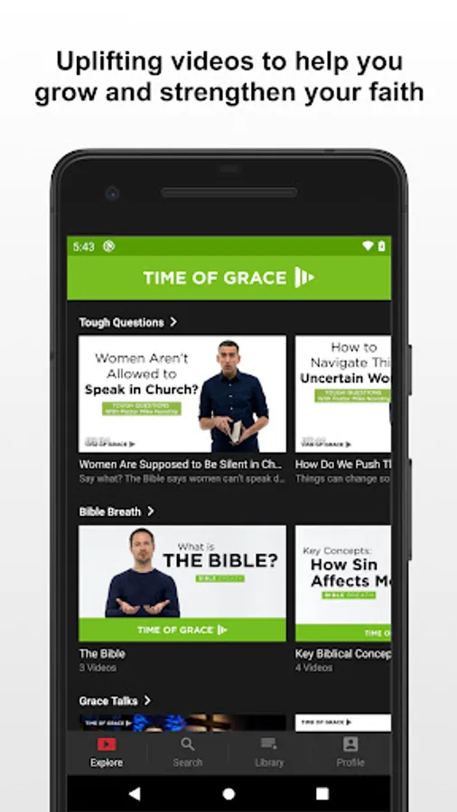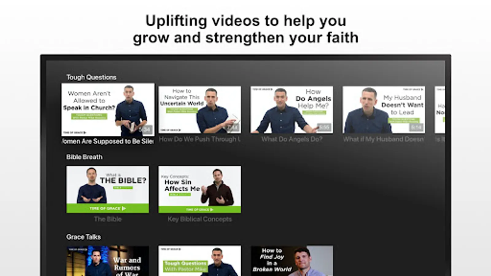 Get hope and encouragement from God's Word. You'll have immediate access to the latest Grace Talks daily video devotions, Time of Grace TV Program, and other uplifting videos to help you grow and strengthen your faith.