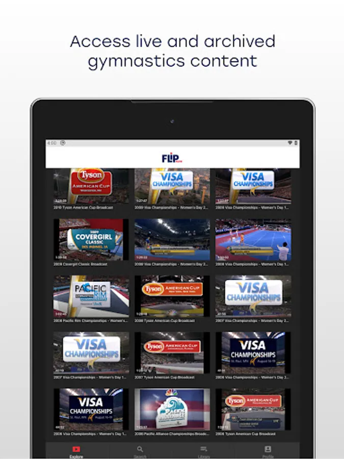 Whether you are looking for live action from this season or simply want to relive some of your favorite moments from the USA Gymnastics archives, FlipNow has you covered. Catch all things USA Gymnastics - including training, competition, and interviews featuring U.S. acrobatic, artistic, rhythmic, and trampoline and tumbling national team members - here!