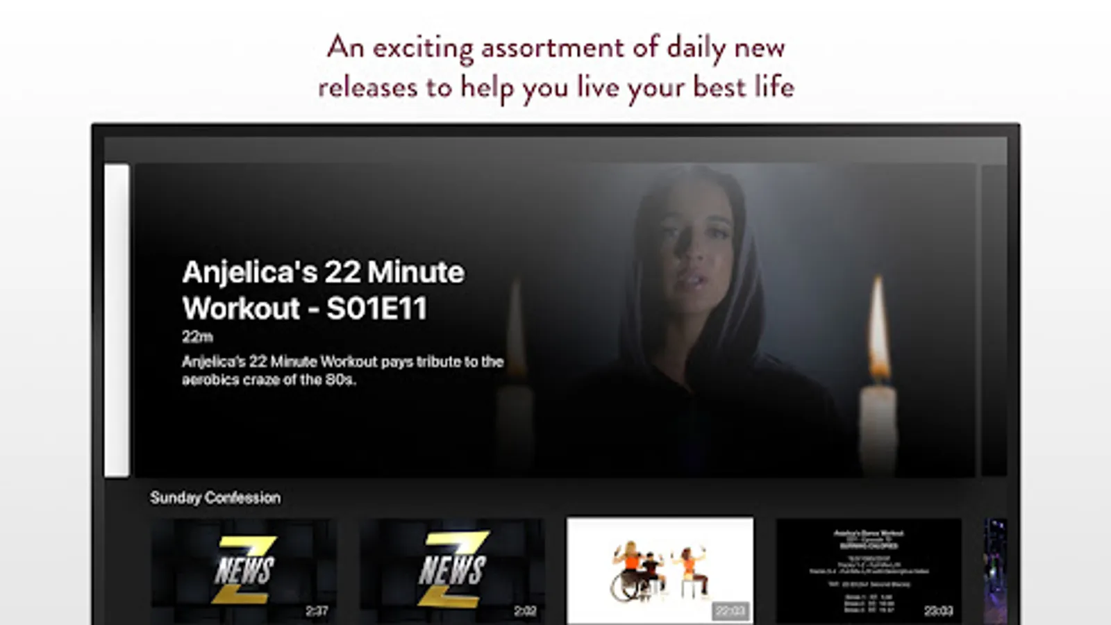 The app features an exciting assortment of daily new releases to help you live your best life. Visit different rooms in Anjelica’s chic apartment for a la carte experiences in fitness, culture, and culinary delights. Customize your on-demand experience. Make selections based off whether or not you want to use equipment, how much time you have, and what you’re looking to focus on. All of the workouts are designed by world-class dancer and fitness expert Anjelica Scannura, who is the host of Anjelica’s Dance Workout, Anjelica’s 22 Minute Workout and Anjelica’s Kettlebell Workout on One TV.