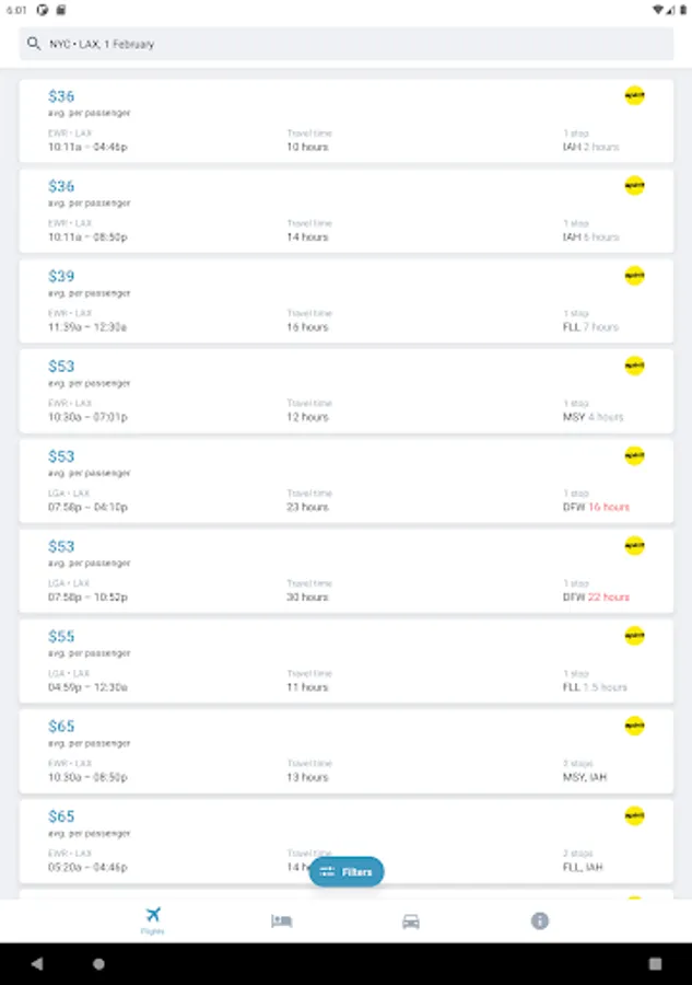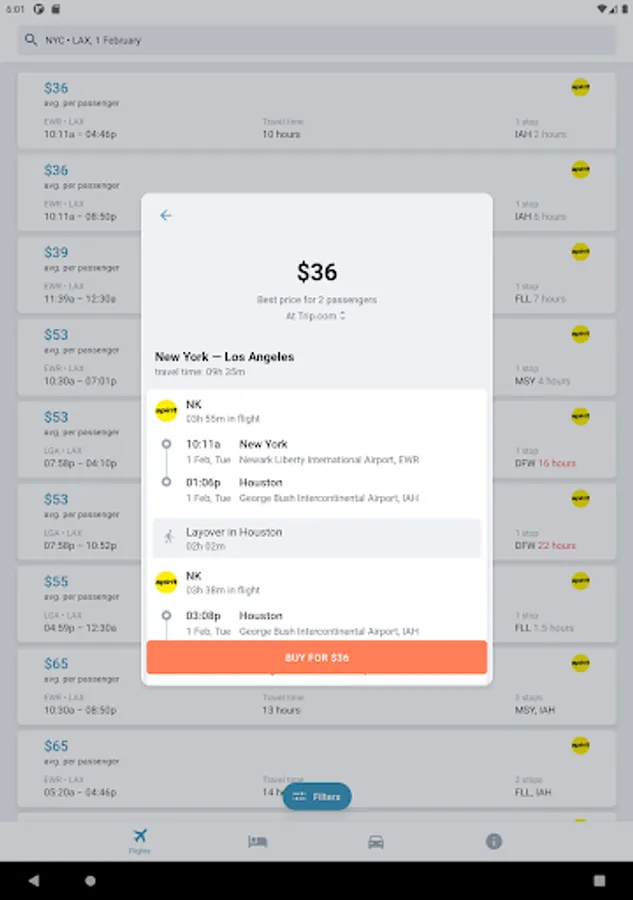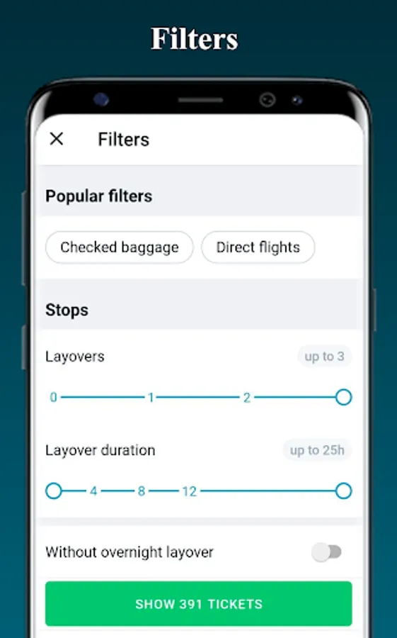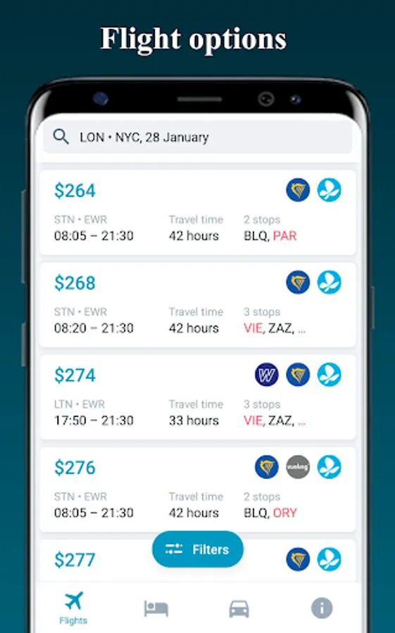 ✓ Compare the prices of plane tickets in different companies, both for direct flights and with transfers;