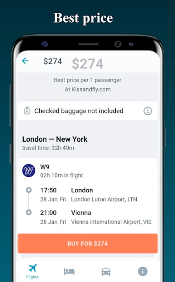 We do not set prices for air tickets and hotel accommodation. We are not sellers. The application only allows you to compare options in different companies in which the booking is made.
