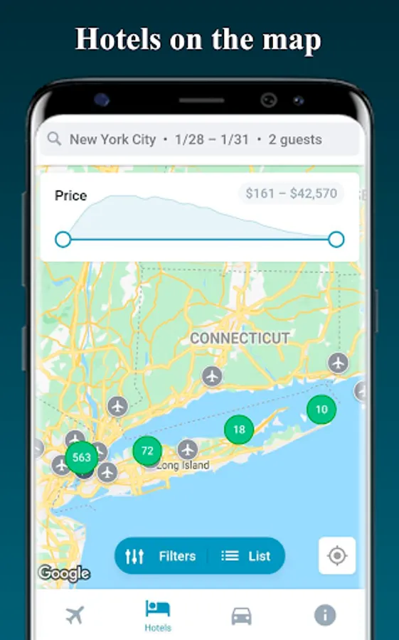 - Find the best accommodation option, booking can be made directly in the mobile app.