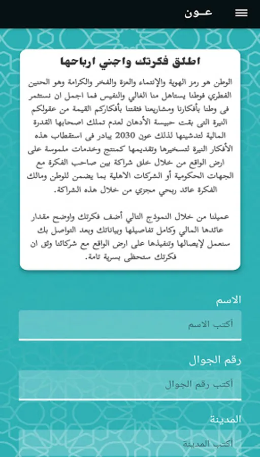 It is an application that provides customers with different segments and shortens the distance for you to achieve your goal and desire through the diverse and distinctive 2030 Aoun services