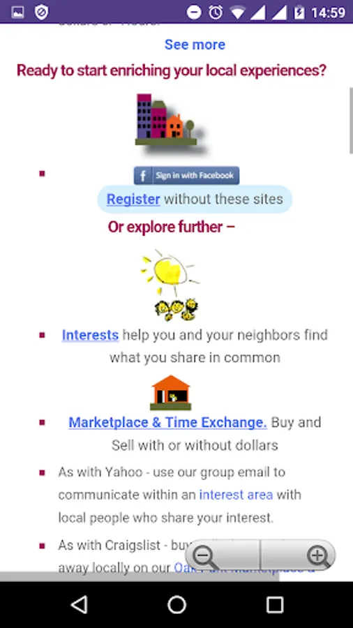 ▸ The Marketplace & TimeBank helps you make local exchanges. Ads are free, and you can buy and sell with or without dollars.