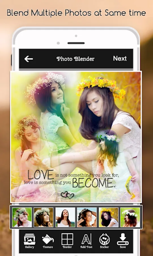 Photo Blender is one stop app for all your photo blending, photo enhancing and photo editing needs. It is easy to use and powerful app to get a perfect result every time.