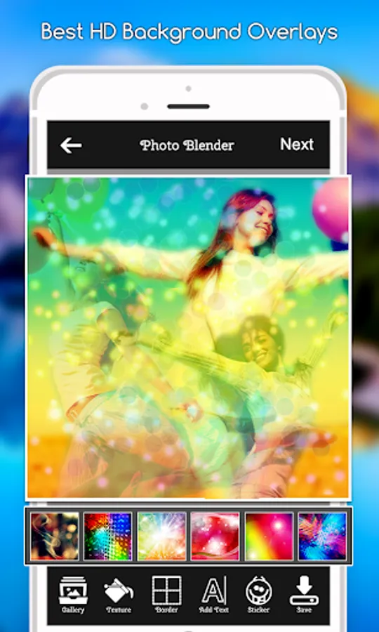 Photo Blender Photo Mixer App support unlimited photo blend at the same time. You can also mix multiple pictures and apply lighting bokeh effect on the pic.