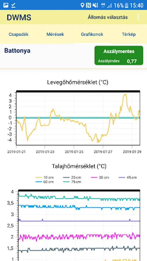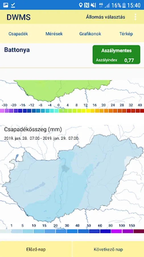 The application can be used to display meteorological measurement data and the resulting values in the meteorological measurement data of the Operational Drought and Water Loss Management System designed and operated by the National Water Resources Directorate and Water Management Directorates in various forms. At drought monitoring stations, air temperature measurement, relative humidity measurement and soil moisture and soil temperature measurements are performed at 6 different depths (10 cm, 20 cm, 30 cm, 45 cm, 60 cm, 75 cm).