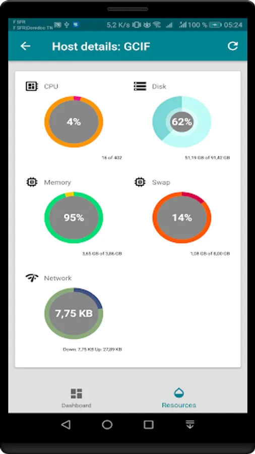 Follow in real time the use of disk space, memory and cpu usage of your VPS from your smartphone, the app also gives you the ability to start, stop and restart your server.