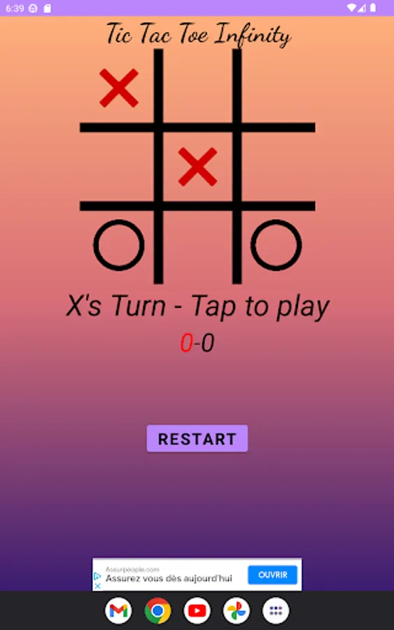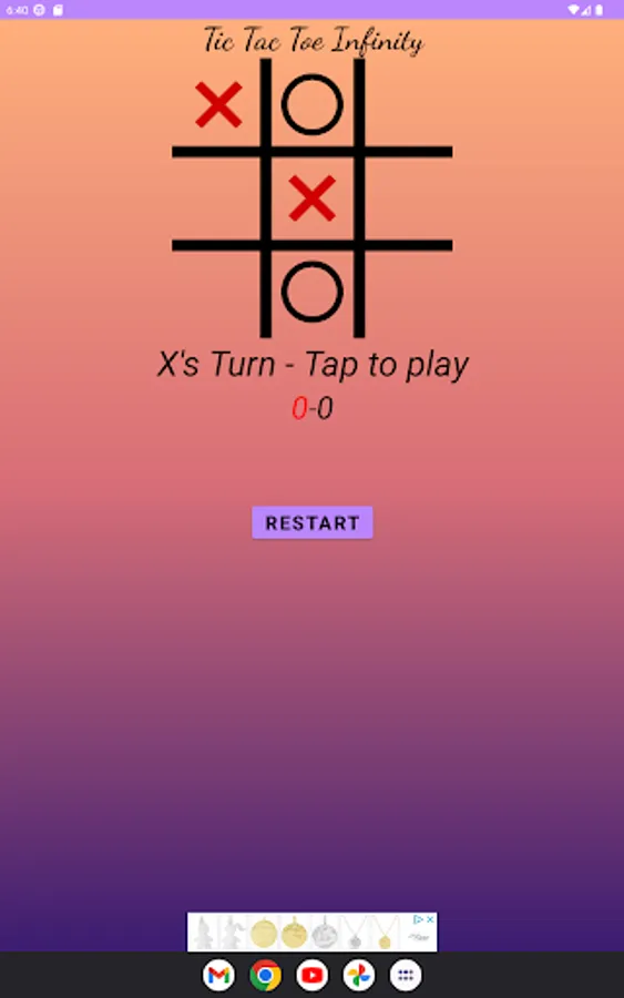 Dive into the classic world of Tic Tac Toe with our intuitive app! Play against the computer or challenge your friends using a single device. The game features attractive graphics and smooth gameplay, guaranteeing hours of entertainment. Put your strategic thinking to the test and try to line up three of your symbols horizontally, vertically or diagonally to claim victory. Whether you're a beginner or a seasoned player, our Tic Tac Toe app is perfect for all ages and skill levels. Download it now and get ready to challenge your opponents in this timeless game!