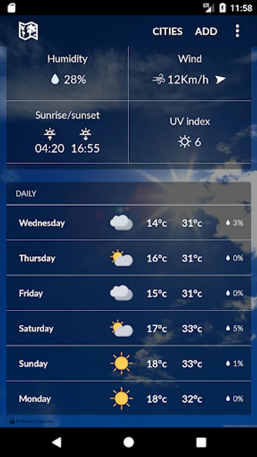 Weather Albania is a mobile application weather free, with an ergonomic design and modern in order to ensure a better user experience and high readability of the weather information.