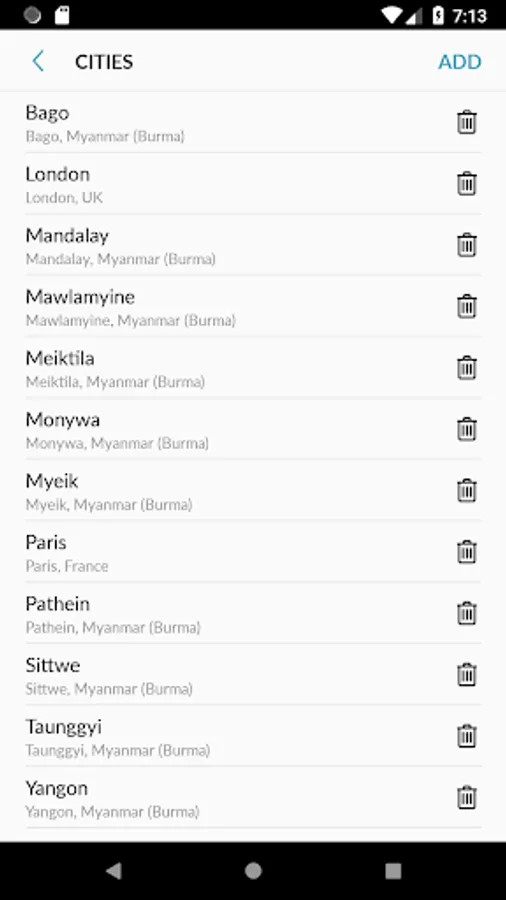Yangon, Mandalay, Mawlamyine, Pathein, Bago, Monywa, Akyab, Meiktila, Taunggyi, Mergui, Dawei, Lashio, Pyay, Myingyan, Henzada, Maymyo, Pakokku, Thaton, Yenangyaung, Toungoo, Magway, Mudon, Pyinmana, Nyaunglebin, Kalay, Chauk, Shwebo, Mogok, Myitkyina, Sagaing, Keng tung, Syriam, Bogale, Pyapon, Rakhine state, Taungdwingyi, Kanbe, Thayetmyo, Allanmyo, Minbu, Tharrawaddy, Thongwa, Ye, Maubin, Kyaiklat, Kyaikto, Martaban, Kyaikkami, Kbyte, Twante, Kyaukse, Yamethin, Mawlaik, Wakema, Myanaung, Labutta, Pyu, Kayan, Yandoon, Moulmeingyun, Letpadan, Katha, Thanatpin, Paungde, Loikaw, Hpa-an, Falam...