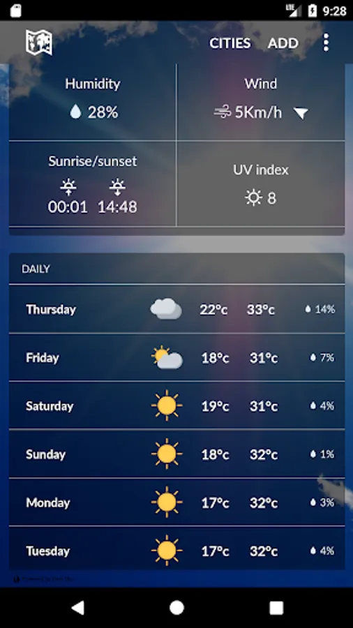 Check the weather forecast in your region and around the world in a blink of an eye.